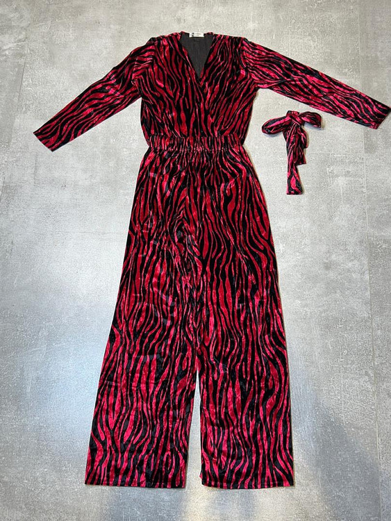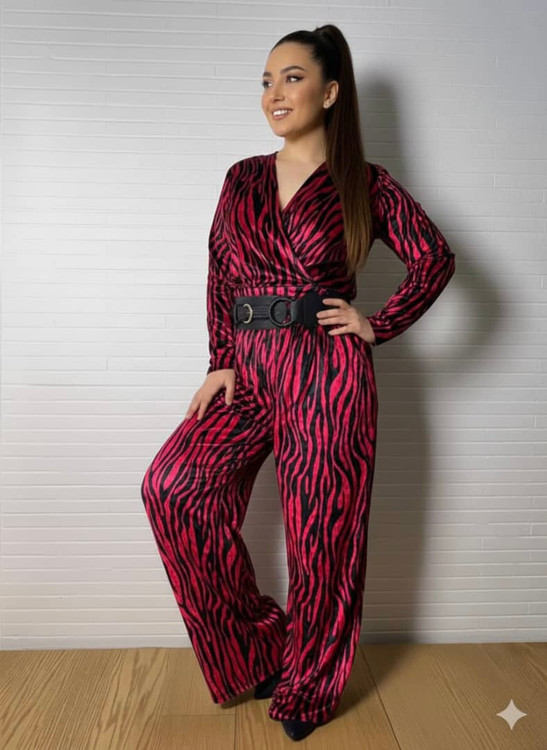 بادی و شلوار کمر بند دار طرح اورال پلنگی مخمل کره ای